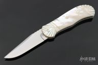"I've been building knives full time since 1981. I started out making my first knife on the kitchen table with a vise and some files in 1978 at the age of 15. Ever since then it's been a passion and a journey to build a better knife than the last. I primarily make pocket knives with a lockback or front lock mechanism. I have made many other types of knives and am always willing to try something new. I'm most widely known for carving seashell patterns in the bolsters and handle material called scalloping. This type of carving has become a trademark of my work and makes my knives easily recognizable to collectors who have heard of me. I won 11 Blade show awards in 7 consecutive years from 2002 to 2008 including 2 best folder awards, one best folder of the year, 3 best handle designs. I ended competing at the Blade show in 2008 with wining best fixed blade which won best of show. I have also won best folder at the Plaza Invitational and the Chicago show."