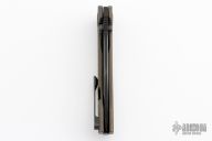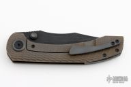 This Raptor by Brian Brown is a Rivers Edge Exclusive. This knife features a tumbled black PVD coated clip point blade with a notched thumbrest.  The handle has a jigged bone titanium frame with a dark blasted tip up pocket clip and backspacer.  Includes the original box. Light Scuffs are visible otherwise the knife is in Excellent Condition.