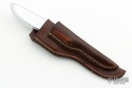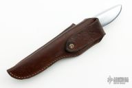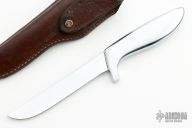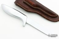 This Shorty by Gerber features a mirror polished blade with hidden tang construction, .055" blade stock and .716" blade depth. The handle has a cast aluminum grip. Comes with a brown leather sheath that has a slot for another smaller knife. Has some scratches, otherwise excellent condition.