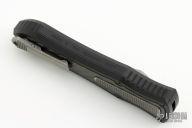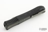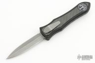 This knife is a Deadlock Model C by Grant and Gavin Hawk. It has a double-edged stonewashed blade. The handle has a carbon fiber and black aluminum frame with a tip down spring clip, titanium. The thumb slide on the handle is also titanium and handle has titanium overlays. Grant and Gavin Hawk set out to create a double action OTF with no blade play.... They did it, NO blade play. Comes with cloth pouch. Excellent Condition.