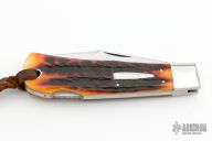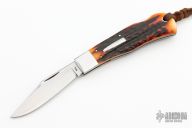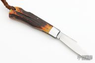 This Lockback from Tobin Hill features a hand rub satin finished clip point blade with nail nick and notched thumbrest. The handle has pinched stainless steel bolsters with stag covers and a stainless steel escutcheon, stainless steel backspacer/lockbar. Includes a zippered case. New from maker at the 2023 Blade Show.