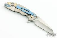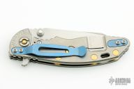 This XM-18 from Hinderer Knives features a stonewash finished Magnacut blade with fullers, notched thumbrest and flipper. The handle has a stonewash finished titanium frame with a black G-10 scale. Titanium clip is positioned for tip up, right hand carry. Comes with original box and extra hardware. New condition.