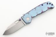 This AD20 by Andrew Demko features a hand hollow ground satin finished blade with notched thumbrest, thumbhole and dual thumbstuds.  The handle has an anodized titanium frame with a tip up anodized titanium clip and "Shark" lock release on the spine. Comes with original box and zippered case. MagnaCut Blade. New from Maker!