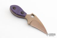 This Plan C from Mr. Horton features a chisel ground tumbled bronzed blade with swedge, .186" blade stock and 1.471" blade depth, full tang construction. The handle has purple g10 scales. New from Maker!