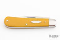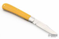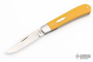 This Slip Joint by TA Davison features a hand rub satin finished blade with a nail nick. The handle has stainless steel bolsters, vintage butterscotch micarta covers with stainless steel escutcheon, stainless steel coin edged liners, stainless steel spring. Comes with zippered case. Has half-stop, flush in all positions. New from maker!