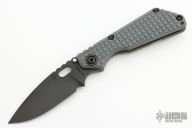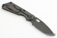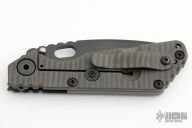 This MSC SNG framelock folder by Mick Strider features a black blade and a MEFP aortic gray G-10 and flamed titanium frame and tip up titanium clip. Includes Hinderer "Lock Bar Stabilizer" for maximum reverse lock retention. Nice detent, lockup and blade seating. New condition.