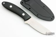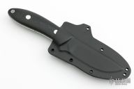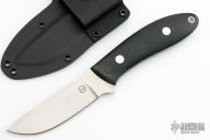 This K-57 Evo Drop Point by Dozier Knives features a satin finished blade, .134" blade stock and 1.055" blade depth, full tang construction. The handle has black linen micarta scales with aluminum pins and lanyard hole. Comes with kydex sheath with belt clip. New from maker at the 2023 Blade Show.