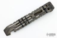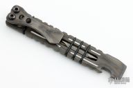 This prybar by Tim Miller is made from 6AL4V Titanium, it is .275" thick, has rubber o-rings holding in a phillips/flathead bit and a 1/4" hex driver for the bit, bottle opener, has lanyard holes and a titanium clip. Comes with COA. New from maker at the 2023 Blade Show.
