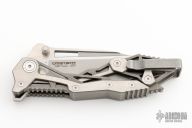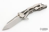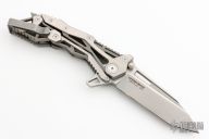 This QTR-11 from Quartermaster Knives features a stonewashed drop point tanto blade with dual thumb studs, notched thumb rest and flipper. The handle is comprised of satin finished and tumbled titanium, and stainless steel tip up clip. This knife is a G&G Hawk design. Comes with original box and papers, Has some light scratches, otherwise excellent condition.