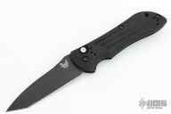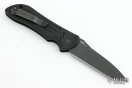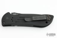 This 9101SBK AUTO Stryker from Benchmade features a black coated drop point tanto style blade with swedge, notched thumb rest. The handle is comprised of milled black aluminum frame with a black coated stainless steel tip up clip. Safety on backspacer and lanyard hole in pommel. Comes with original box and papers. Excellent condition.