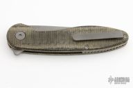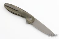 This rendition of Model 1 is a mid-tech, flipper knife, with a liner lock. The handles micarta scales with inlaid titanium frame and liner. The blade is made of S35VN and has been heat-treated and cryogenic tempered. The blade rides on ceramic caged bearings and hardened stainless thrust washers. The pivot and pivot screw has been made from hardened 416 stainless. The liners and pocket clip are made from titanium while sporting a ceramic detent ball. The knife and materials used are all 100% American Made. Comes with zippered case. Excellent condition.