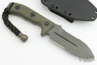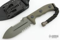 This Crosshair has a green coated partially serrated double edged blade with a green polymer handle. .200" blade stock and 1.699" blade depth, full tang construction. Comes with kydex sheath with molle lok. S/N 01976 and dated 02/2015. Excellent condition. Comes with original box.