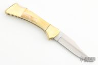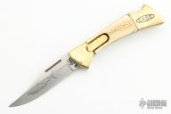 This Mako is an automatic conversion with a push lever trigger. Satin finished blade. Brass frame with walrus ivory scales. Has some scratches and blade play, otherwise good condition.