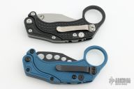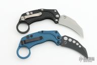Reat Knives is making yet another splash with the EXO-K Gravity Karambit Knife. That's right: it's both a Karambit and a Gravity Knife. By holding down the button and flicking your wrist, the blade and frame will rock back and forward again, deploying the wickedly-curved blade into the open position where it locks. Push the button again and reverse the steps to close the knife. Thanks to its reversible pocket clip, you can carry it to your preference. And speaking of preferences, finger rings aren't for everyone. In the case of EXO-K, it's removable! Like any good trick, operating this attention-grabbing knife will take some practice—which can be done safely with the included blue trainer—but once you have it down, you'll be flipping this bad boy into action. It's great for day-to-day cutting, fidgeting, and self-defense situations. The Reate EXO-K takes pocket knife fun to a new level with an innovative, practical, and entertaining design. It's built to Reate's exacting quality standard with tough and affordable materials, like aluminum and Bohler N690 steel, to keep the cost down. The EXO-K is truly a knife like no other.