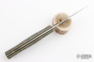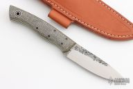 Hi, I am Andy Roy, the maker at Fiddleback Forge, LLC. I started making knives in 2007, and went full time May 1, 2009 when I got laid off of my last engineering position. I consider myself a toolmaker, and much of the focus of my work is in the handle. I strive to make the most comfortable handle you?ve ever held. It is important to me that you can hold the knife in many positions comfortably and do hard extended work with the blade. I also think it is important for the handle to index the knife in your hand, so that no matter how you hold it, you know where the edge is without having to look. I use a variety of steels, and my favorite grinds are convex, and Scandi. In 2010 I spent a lot of time developing a finish treatment for the flats of my knives that I call 3D Spalted Steel. It adds a unique character to my blades, and I think it complements the refined handle work well. I am very excited to be working with Arizona Custom Knives, and hope you enjoy the Fiddleback Forge knife you buy from them.