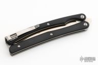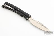 This BaliTac by Max Knives is a Grind Tactical Deisgn. It features a satin finished blade with fullers. The handles have Black G-10 scales, bead blasted titanium liners and T-latch, tip up stainless steel clip. Comes with velcro case and COA #01/150. New from maker at the 2023 Blade Show.