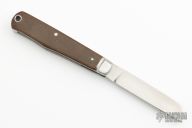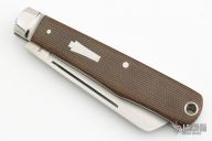 This custom slipjoint from T.A. Davison is knife number 1760 that he has made. This particular piece has a hand rubbed, CPM 154, satin finished blade with nail nick on the presentation side of the blade. The handle features stainless steel fluted bolsters, liners, and shield as well as micarta covers. Has half stop, flush in all positions. Includes a padded zippered case.