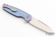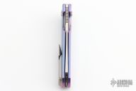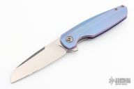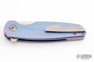 This Haptic by Holt Bladeworks features a tumbled blade with a notched thumbrest and flipper tab. The handle features a milled and anodized titanium frame with a titanium tip up pocket clip with hidden hardware. Nice detent, lock up and blade seating. Includes the original box, tool and card. Excellent Condition.