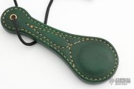 This Mini Brauer Spring Sap by Wyatt Derr is made from leather and filled with lead. 7" overall. New from maker at the 2023 Blade Show.