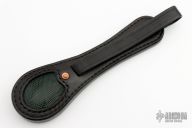 This Spring Sap by Wyatt Derr is made from leather and filled with lead. This one has a spring in the handle and lizard skin inlays. 9" overall. New from maker at the 2023 Blade Show.