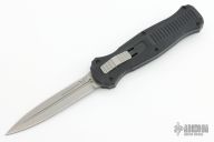"Introducing an OTF like none-other.. The new Infidel® is rapidly making believers out of many a skeptic. Built for strength and reliability the patent pending double-action mechanics get it done over the long haul. Grab on and you will find the handle grip rock-solid with its patented machined in Presidio® style bi-directional tread pattern, and overall generous sizing for gloved hands. Intuitively pressure the release-slide forward and its spear-point edged steel fires and locks up with a unique three-point retention system with amazingly negligible blade play. Reverse the process and the blade retracts in a rapid blur of motion. The Benchmade Infidel is a special operator’s fantasy come true." Light scuffs are visible on the frame otherwise the knife is in Excellent condition.