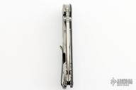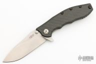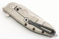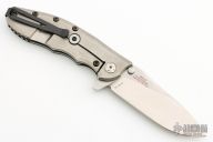This Hinderer Designed 0562 Framelock Flipper has a drop/ spear point blade with swedge, notched thumb rest, dual thumb studs and flipper. Handle is carbon fiber and stonewashed titanium - with stainless steel lockbar insert and lockbar stabilizer. Stainless steel clip is tip up. Comes with original box and papers. Excellent condition.#26116
