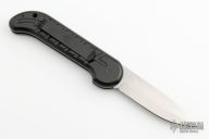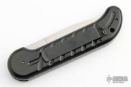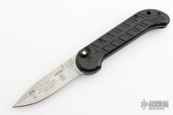This Ox Enterprises / Charles Ochs coil-spring automatic features a satin finish blade and black anodized aluminum frame. Black stainless steel clip. Powerful and fast opening. Perfect function. Has some light scuffs, excellent condition. Comes with original box. Blade is marked "U.S. Army Special Forces 50th Anniversary 1952-2002" on blade.