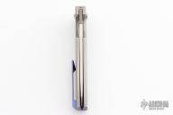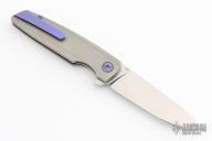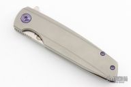 This Specter by Holt Bladeworks features a high polish tumble finish blade with a notched thumbrest and flipper tab.  The handle features a milled titanium frame with anodize finish tip down pocket clip and hardware. Nice detent, lock up and blade seating. Includes the original box and papers. Light scratches are visible on the pocket clip otherwise the knife is in excellent condition.