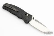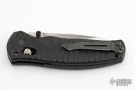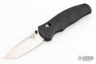 This 1000001 Volli by Benchmade features a stonewashed drop point blade with swedge and dual thumb studs. The handle is comprised of carved and contoured G10 scales over a black coated steel sub frame and notched black G10 backspacer. Sliding safety on spine. Assisted opening with AXIS lock. Has some light scratches, otherwise good condition. Comes with a zippered case.