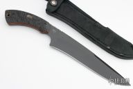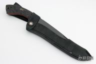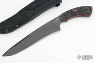 This Open Season Moose Skinner from Buck Knives features a black cerakoted blade with swedge and notched thumbrest. The handle is comprised of black g10 and orange liners over full tang construction. Hidden lanyard pin in pommel. Includes leather sheath with belt loop and original box and COA. 1/150 made for the Buck of the month club. Excellent condition.