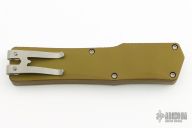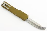 This Cleric OTF by Heretic Knives features a stonewashed blade. The handle has a green aluminum frame with a stepped stainless stel thumbslide and stainless steel tip down clip. Comes with original box and papers. Excellent condition.