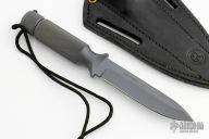 "Designed to incorporate the two basic criteria required in knives destined for hard field usage, these spear-points have plenty of blade weight and good strong points. This design has been used by soldiers all over the world who have found them to be extremely good weapons as well as rugged dependable tools. The 4” bladed Shadow III is a good everyday carry knife. " Knife and sheath are in excellent condition. The blade has a false top edge, .183" blade stock and .842" blade depth, integral construction with hollow handle. Comes with original black leather sheath, box and COA dated January 26, 2009. Excellent condition.