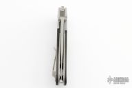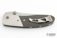 This Lightfoot LCC M/A Prototype by Microtech Knives is a Greg Lightfoot design, it has a silver coated blade with dual thumbstuds and a notched thumbrest. The handle has bead blasted stainless steel bolsters, carbon fiber scales, stainless steel liners and clip, tip up carry. Dated 5/2000. Has some scuffs and scratches, otherwise good condition.