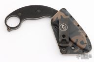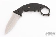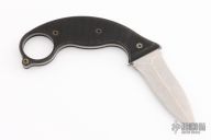 This Punch Badger by Tracker Dan features a stonewashed dagger blade with false top edge, .119" blade stock and 1.215" blade depth, full tang construction with black G-10 scales. Has an ambidextrous kydex sheath with belt clip. Excellent condition.