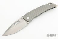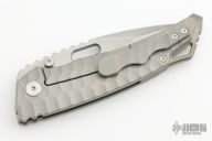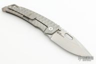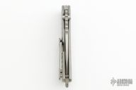 This Ares from PMP Knives features a stonewashed blade with a notched thumbrest. The handle features a bead blasted titanium frame with a matching titanium tip up pocket clip. Includes padded zippered case. New from Maker!