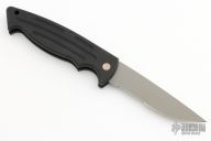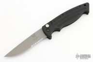 The Benchmade 2000S Reflex from Benchmade is a side opening button automatic with bead blasted, partially serrated blade and black fluted aluminum handle. Good strong opening action. Comes with Benchmade sheath. Discontinued. Has some light scuffs and scratches, great condition otherwise.