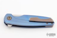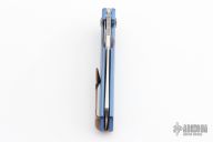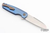 This Haptic by Holt Bladeworks features a tumbled blade with a notched thumbrest and flipper tab. The handle features a milled and anodized titanium frame with a titanium tip up pocket clip with hidden hardware. Nice detent, lock up and blade seating. Includes the original box, tool and card. Excellent Condition.