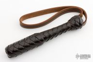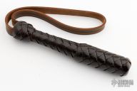 This Mini Blackjack by DD Whips. Spring core dark brown cowhide leather covered blackjack with cowhide wrist strap and grip. New from maker. Comes with COA.