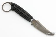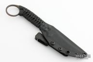 This Beyonce by Kevin Foster features a double edged blade with .156" blade stock and 1.061" blade depth, full tang construction with ring at the butt. Cord wrapped grip. Comes with a kydex sheath. Has a few light scuffs, otherwise excellent condition.