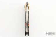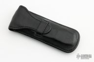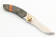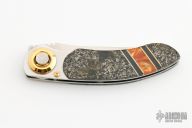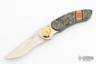 Opening and closing is by the Paul Presto axial mechanism designed by Paul Poehlmann. Has a satin finished recurve blade. Stainless frame with stone and acrylic overlays. Comes with a black leather case. Excellent condition.