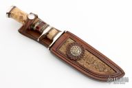 Randy’s fascination with knives began as a young man when he made his first knife in a high school “metals” class. He collected them for years and eventually began making his own to get a better edge-holding skinner for hunting. Randy read books and visited local makers to learn the craft. In 1979, he decided to invest in shop equipment so that he could properly master his knife making skills. In a few years, he was making and selling knives to local hunters, while continually developing his style and craftsmanship. He attended his first knife show in 1986 and has been participating in about six shows each year since then. As an avid hunter, Randy knows how a good hunting knife should perform. He loves to “field-test” his designs and feels that a quality knife should not only look great, but perform well as a tool. He offers a wide variety of knife styles; from utility hunters and fighters to collector pieces such as daggers and bowies. Although the actual work of grinding and buffing knives is very tedious, he always finds it rewarding to see the final finished product. Randy particularly enjoys meeting people who find knives as interesting and exciting as he does. Randy’s wife, Sonja Lee, is one of the premier sheath makers in the business. Using exotic hides, or leather and various forms of tooling, she has mastered the craft of sheath making. Sonja creates the custom sheaths which are provided for each of Randy Lee’s knives and she is now making custom sheaths for many other knife makers and collectors.