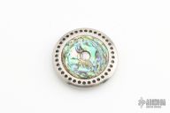 This is a titanium worry stone with abalone inlays. Excellent condition.