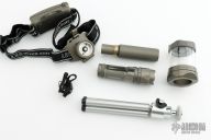 Phoebus Wilderness Kit PKA01CR123/2AA is an all-in-one convertible LED flashlight kit for camping and backpacking. The Phoebus Wilderness Kit Flashlight can function as a flashlight, headlamp, or lantern with the included attachments. Based on the popular PK-01-CR123 flashlight body, the Wilderness Kit can be easily adapted for any number of night time needs. This Phoebus flashlight can be used with a single CR123 battery, with two AA batteries using the body extender, as a head lamp with separate AA battery pack for hands free use, or with the lantern head attachment and tripod for reading or task lighting. The body casings and attachments in the Phoebus Wilderness Kit Flashlight Set are precision machined from high-strength aircraft aluminum, and feature Type III military grade hard anodizing designed to resist scratching or damage from impact. The Phoebus Wilderness Flashlight Kit comes in an attractive gift box for handy storage of components.