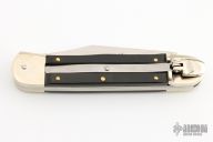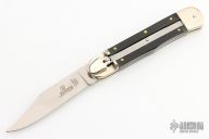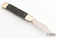 This leverlock auto by Hubertus features a mirror polished clip point blade, nickel silver double bolsters, ebony scales, and nickel silver liners. Opens with a nice snap. Very fast opening. Comes with original box. New condition.