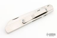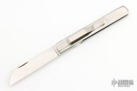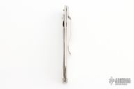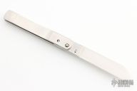 Hand made from stainless steel. Has a pinch locking type mechanism. Separate the handle with your fingers to close.
