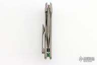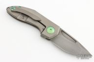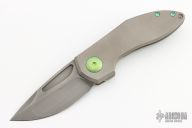 This Hobbit flipper from Simeon Custom Knives features a compound ground blade with a "Smoke" hand rubbed satin finish. The titanium handles are tumbled, tumbled titanium clip and anodized hardware. This knife flips very well and locks up with absolutely no play. Blade is centered when closed. Pocket clip is positioned for tip up carry. Comes with a velcro case and COA dated July 2023. New from maker.
