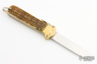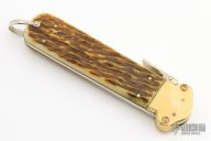 This Rare Vintage French Gravity Knife by Eclair features a mirror polished blade. the handle has brass bolsters and liners, jigged bone scales, stainless steel frame. Has a few light scratches, otherwise excellent condition for its age.