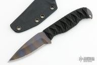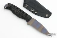 This Magni by Joe Watson features an anodized titanium blade with a carbonized edge, .130" blade stock and 1.002" blade depth. The handle has flat black cord wrap. Comes with a kydex sheath. Excellent condition.