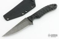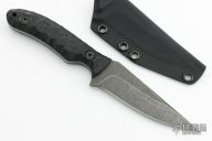 This Kidon by Joe Watson features a black stonewashed blade, .154" blade stock and 1.126" blade depth, full tang construction. The handle has black G-10 scales. Comes with a kydex sheath. Excellent condition.
