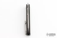 This Blade HQ Exclusive Kizer Lundquist Feist features a stonewashed blade and a black shredded carbon fiber handle.